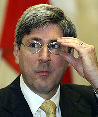 Feith’s former boss, Deputy Defense Secretary Paul Wolfowitz, has also not been heard from recently, which in many ways is very strange, given that his last public post was president of the World Bank and his official at AEI (where he has been a Visiting Scholar since his ignominious resignation 18 months ago) stresses his interest in development and trade. You would think that, given the current financial crisis and its potentially disastrous ripple effects on emerging economies and poor countries (for which he has expressed particular sympathy in the past), he would not have been shy about offering his advice about how to protect them. But, apart from his advocacy of business and defense ties with Taiwan (he’s chairman of the U.S.-Taiwan Business Council), he seems to have largely disappeared from the public sphere. In the realm of economic development and aid, Hudson has acquired a far more credible figure in the person of former USAID Administrator Andrew Natsios, who joined the Institute at the same time as Feith.