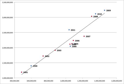 The graph, from the Just the Facts blog, shows the trend in economic and military aid to Latin America between 1999 and 2010. It’s a common mistake, what with Reagan’s extreme terrorism in Nicaragua and El Salvador, to think that the height of U.S. intervention into Central and South America has gone and passed. But U.S. policy is as imposing as ever.
