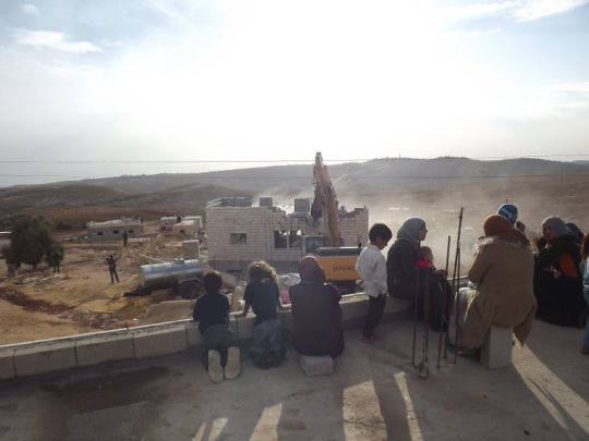 Palestinian women and children watch the demolition of a home in Ad Deirat, which is located in the south Hebron Hills (photo: Operation Dove)