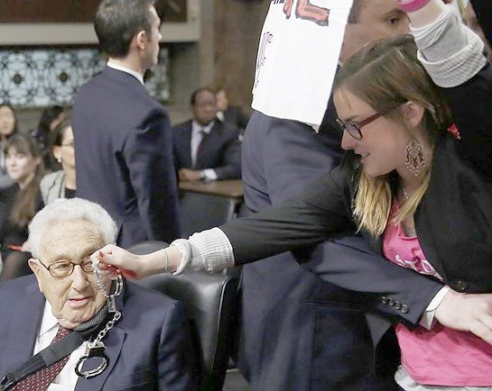 While McCain called us disgraceful, what is really disgraceful is the Senate calling in a tired old war criminal to testify about "Global Challenges and the U.S. National Security Strategy." After horribly tragic failed wars, not just in Vietnam but over the last decade in Iraq and Afghanistan, it’s time for the U.S. leaders like John McCain to bring in fresh faces and fresh ideas. We owe it to the next generation that will be cleaning up the bloody legacy left behind by Kissinger for years to come.