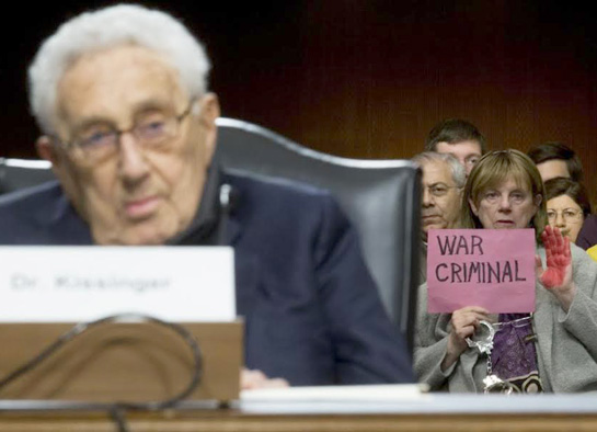 Hitchens’ words were lost on Senator McCain, who preferred fawning to accountability. That’s where CODEPINK comes in. If we can’t get Kissinger before a court of law, at least we can show – with words and banners – that there are Americans who remember, Americans who empathize with the man’s many victims, Americans who have a conscience.