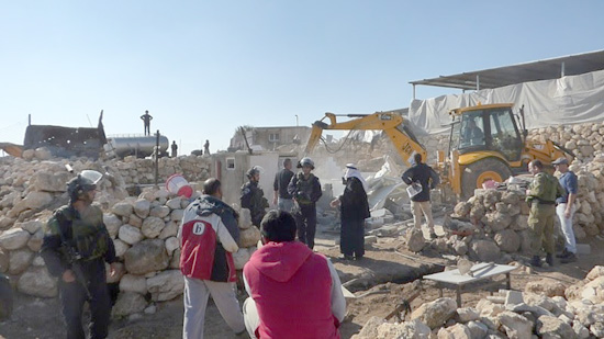 Early on the morning of February 2nd, Israeli soldiers closed access to Firing Zone 918 and placed checkpoints near the Palestinian villages of Bir al Idd and Al Fakheit. In the village of Jinba, Israeli soldiers and border police demolished 15 houses. They also fired sound grenades and teargas. Several solar electric panels were confiscated by the Israeli civil administration. In nearby Halaweh village Israeli forces destroyed another 9 houses, bringing the total to 24. Israeli police confiscated a car used by international volunteers and Palestinian activists.