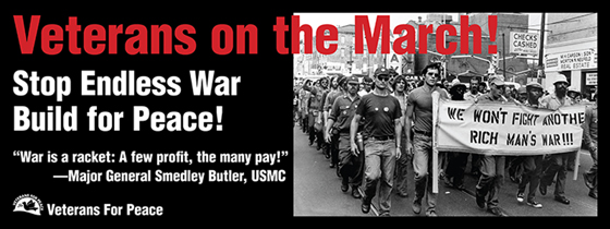 Veterans cannot be silent. On May 29th and 30th Veterans For Peace and other veterans groups will be in Washington, DC, to make our collective veterans’ voices heard loud and clear and we invite you to join us!