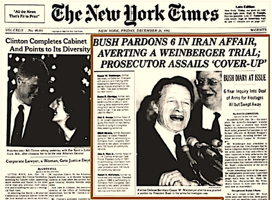 It caused an outcry in some circles, as The New York Timesreported: “Bush Pardons 6 in Iran Affair, Aborting a Weinberger Trial; Prosecutor Assails ‘Cover-Up.’”