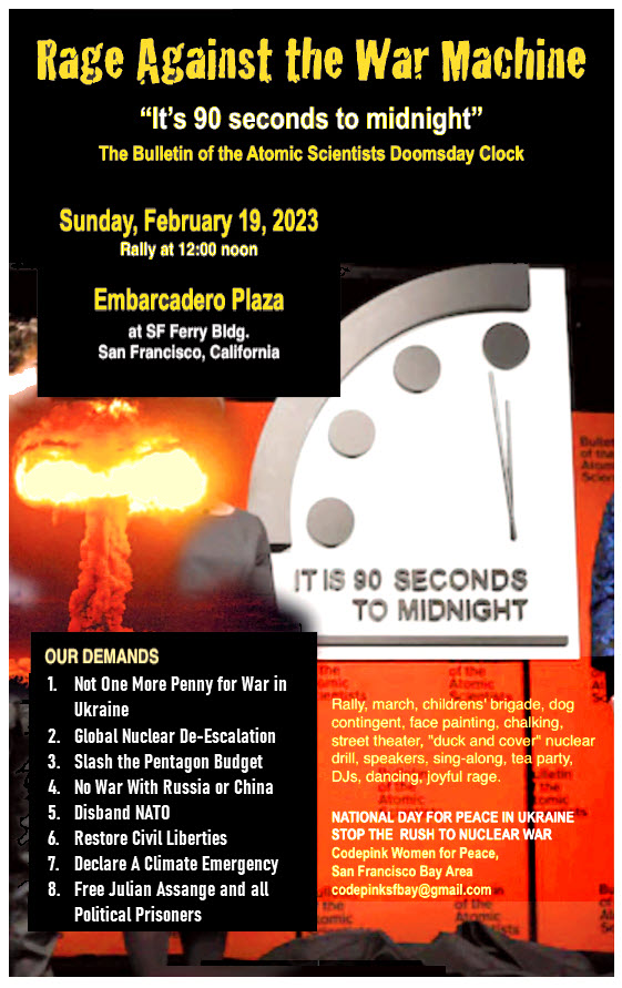 We might not be able to stop World War III but we should try. That is why I am helping organize Rage Against the War Machine protest on February 19, 2023.