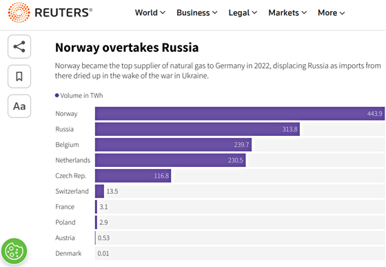 One point Sy does not much stress, but it is worth saying more about, is that Norway and the USA are of course the two countries who have benefited financially, to an enormous degree, from blowing up the pipeline.