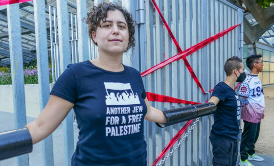 A speaker, who was introduced as a Jew who opposes Zionism and was born before the State of Israel was established, was especially warmly received by the overwhelmingly youthful protesters.