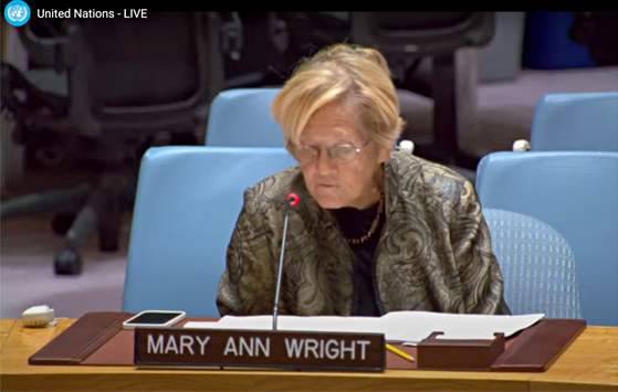 While various briefers and delegates presented conflicting perspectives, CODEPINK member Ann Wright, a retired United States Army colonel and former diplomat, took a different stance. As a civil society representative, she introduced herself as a concerned citizen and taxpayer who resigned from the U.S. Government in 2003 in protest against the Iraq War.