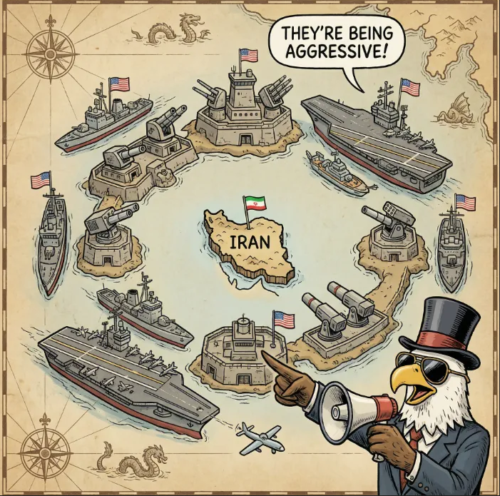 This week, Iran had the audacity to fly a drone near the USS Abraham Lincoln, an American aircraft carrier innocently parked 500 miles (or 434 nautical miles) off their coastline as part of a Trump naval “armada” deployed amid threats to bomb the country into oblivion over a nuclear weapons program that does not exist.